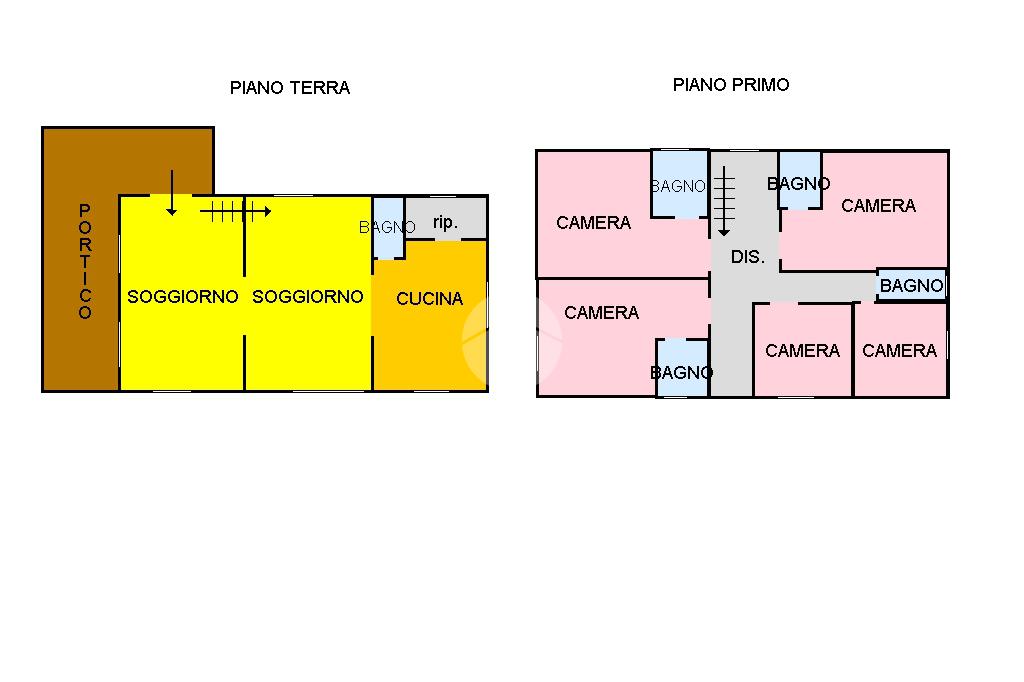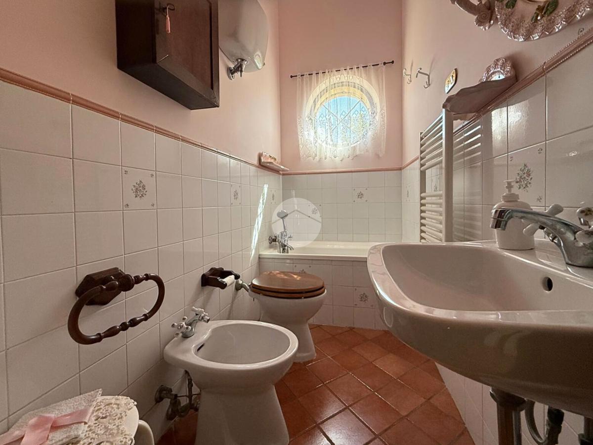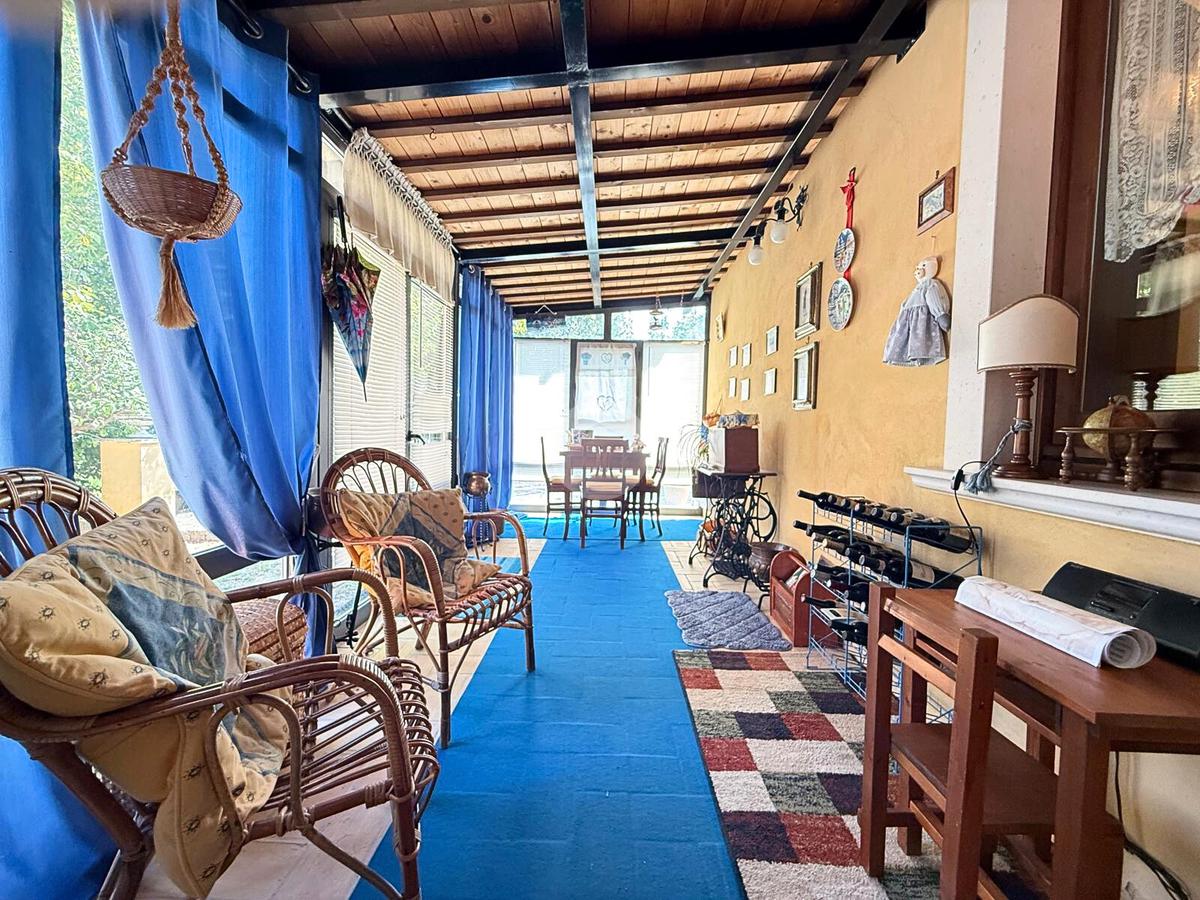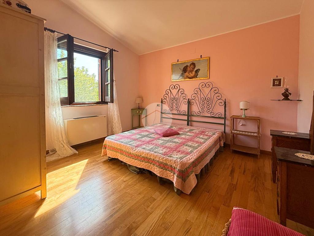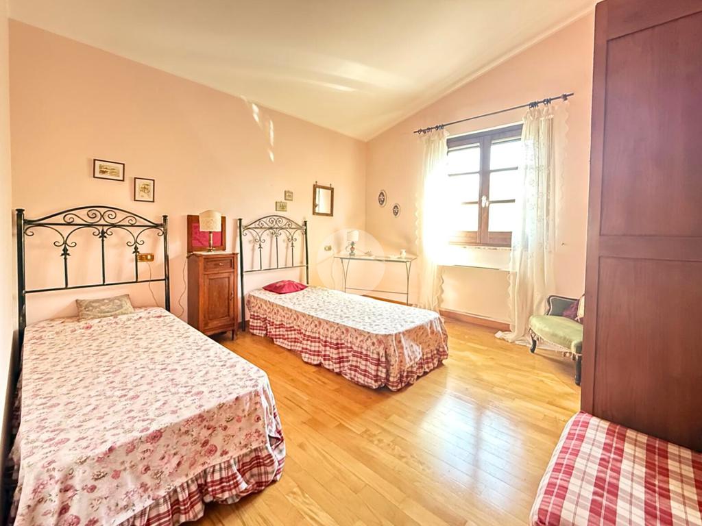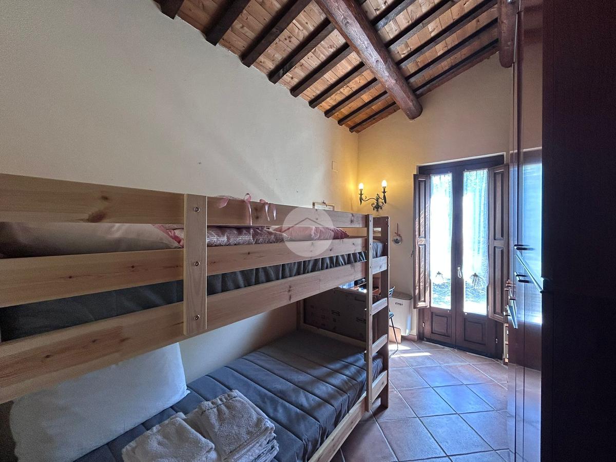 L’edificio principale, elegante e spazioso, offre un grande soggiorno con cucina al piano terra, affacciato su un ampio portico coperto, ideale per cene all’aperto, colazioni con vista e momenti di relax per gli ospiti. Al piano superiore si trovano cinque camere da letto, ognuna con il proprio bagno privato, perfette per l’accoglienza turistica o residenziale.