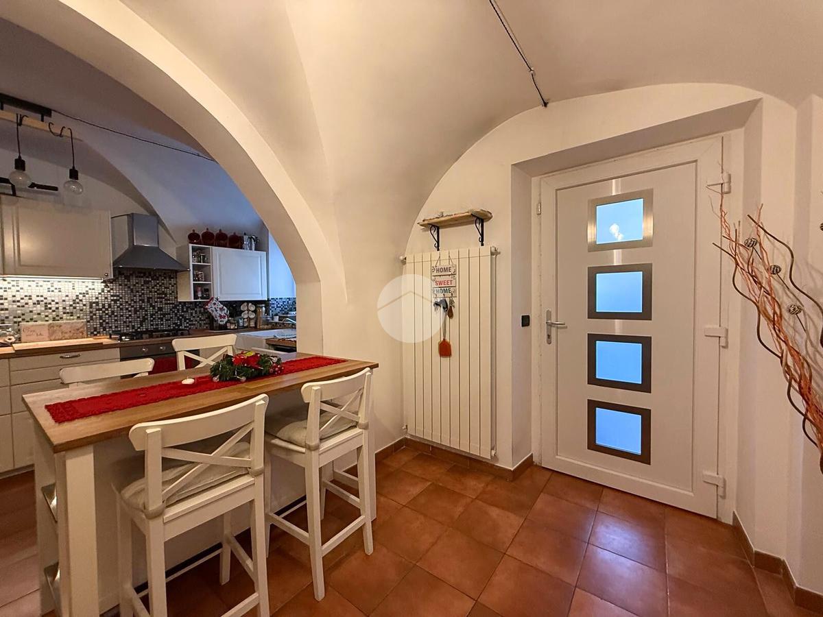 Al piano terra l’abitazione si apre su una luminosa zona giorno con cucina e soggiorno, completata da bagno di servizio.