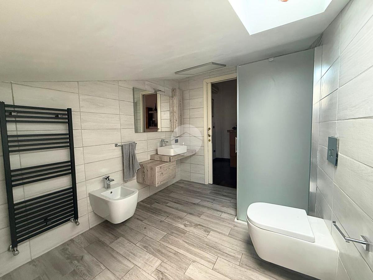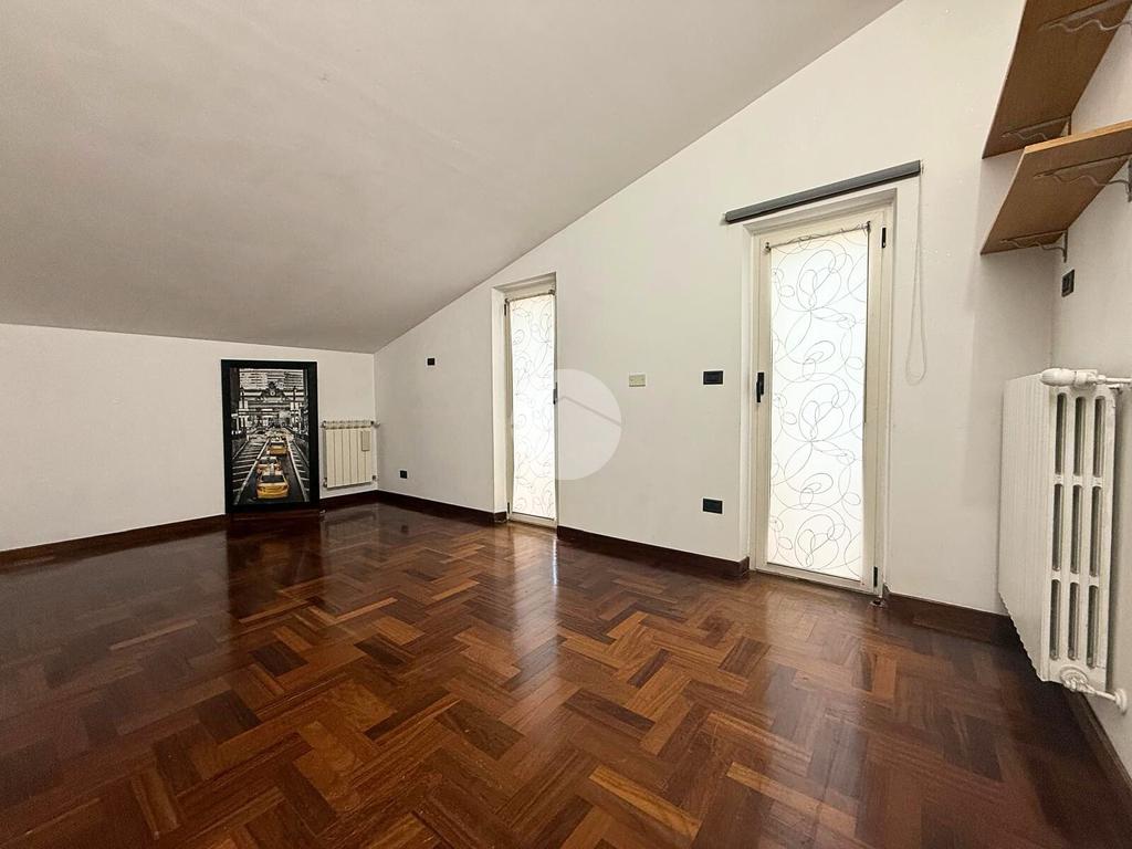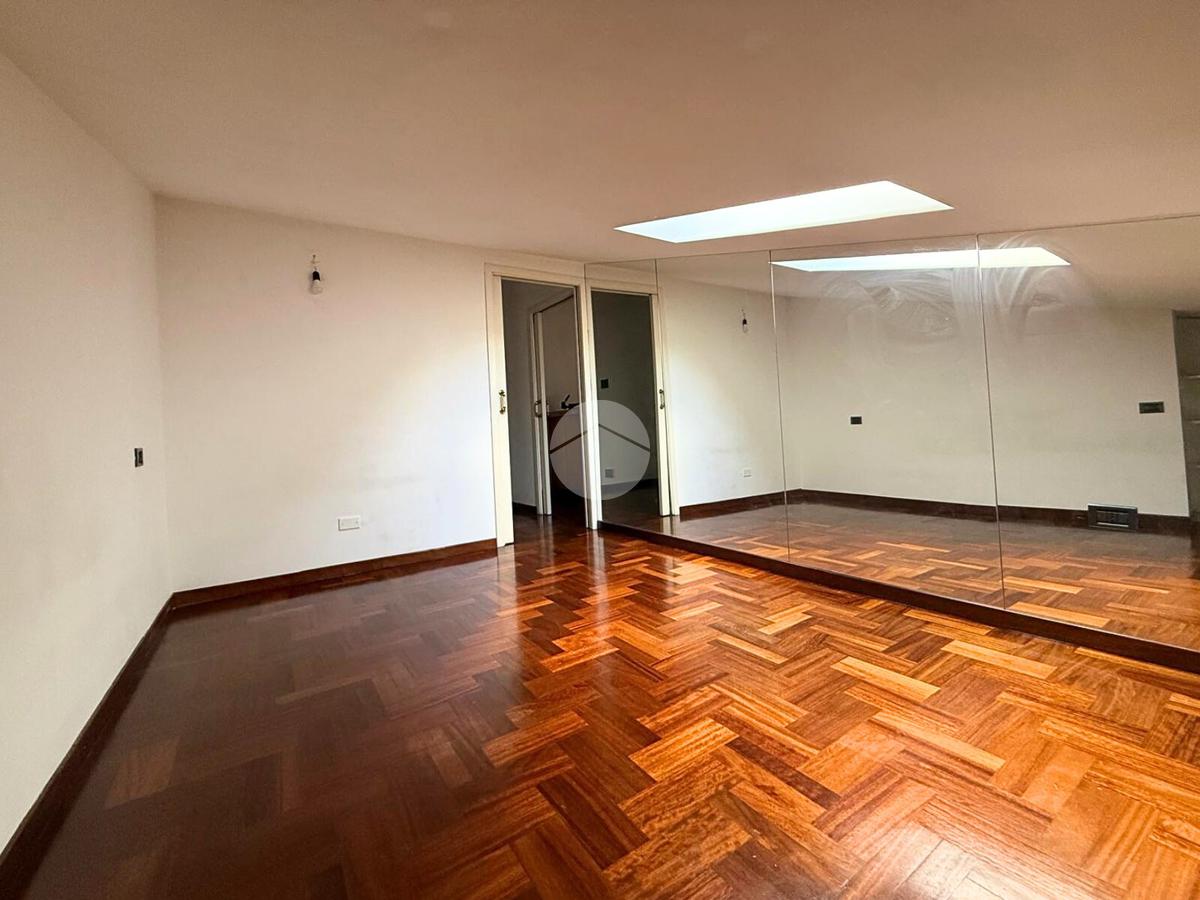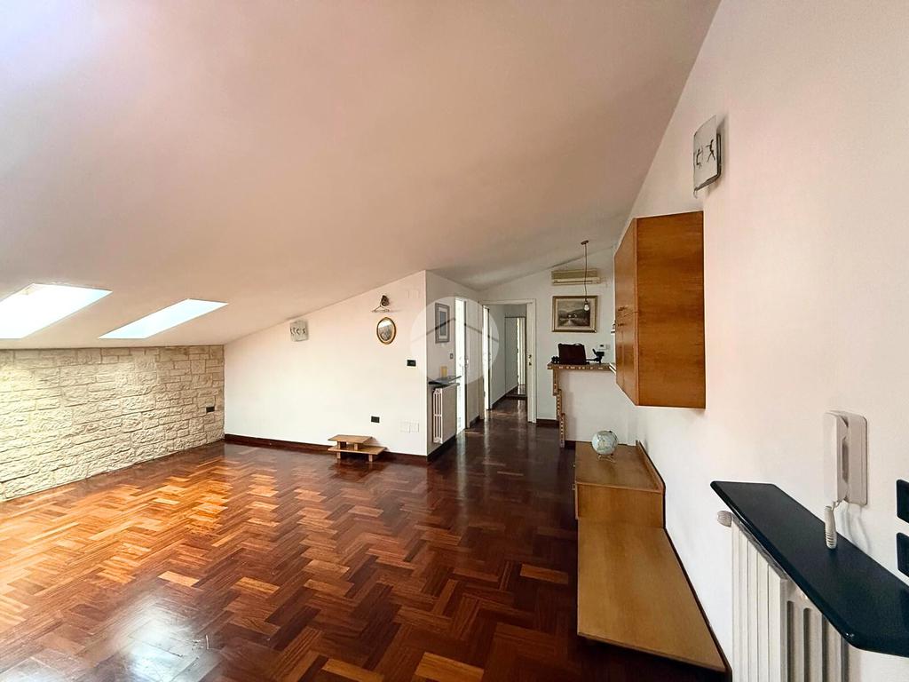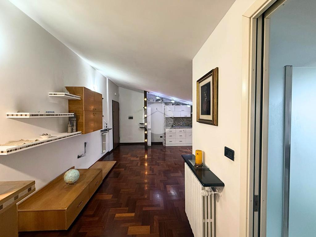 Tutto l’appartamento è rifinito con pavimenti in parquet, che donano eleganza e continuità agli spazi.