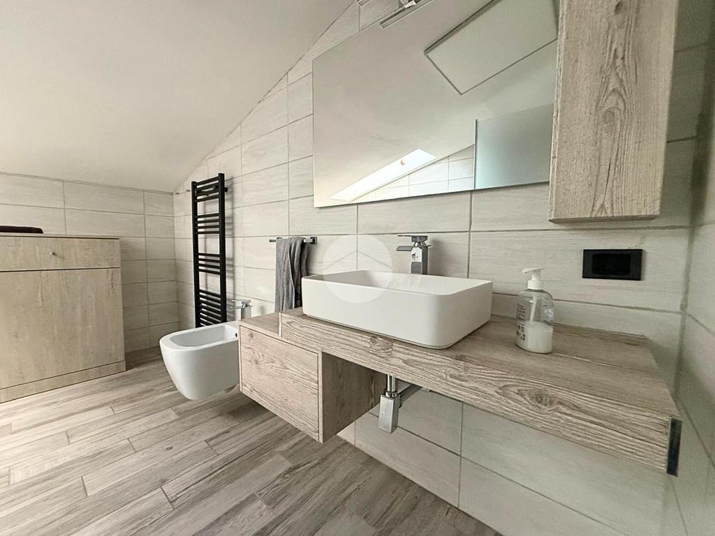Il bagno ristrutturato con gusto e materiali di qualità, mentre la zona notte è composta da due camere spaziose e un comodo disimpegno che rende l’ambiente ancora più funzionale.